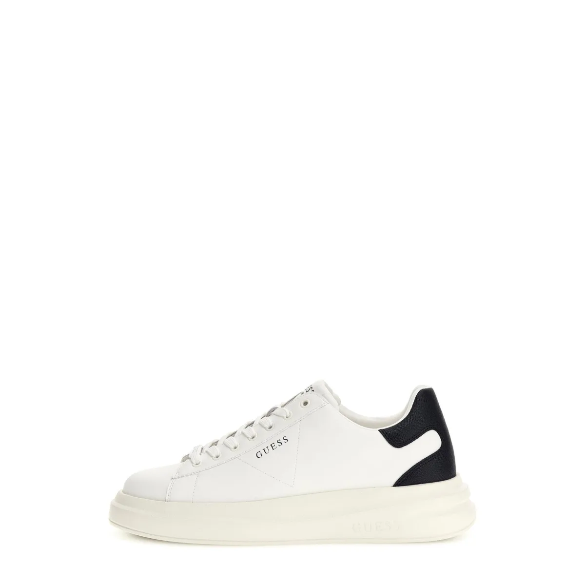 Guess USA Elba herensneakers van synthetisch materiaal in wit. Authentieke Guess-schoen - streetwear/sportwear design van Guess - Guess voor modebewuste mannen, perfect voor dagelijks gebruik - deze witte Guess-sneakers passen perfect bij de rest van je garderobe - comfortabele synthetische materialen - klassieke veters - USA Elba - synthetisch