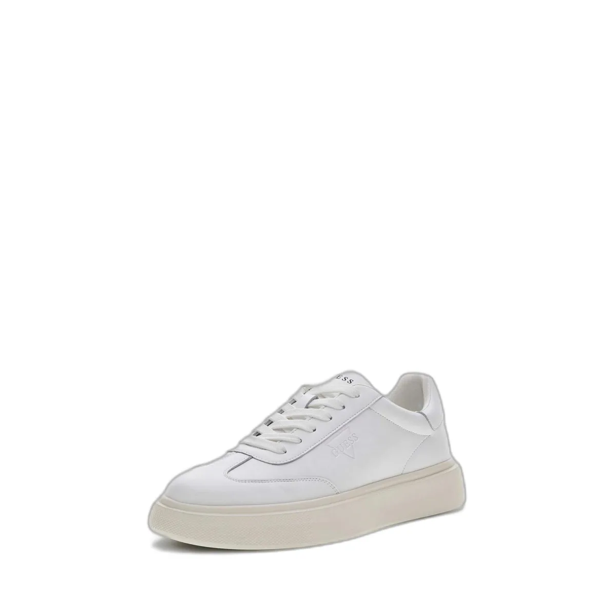Witte herensneakers van Guess met monogram, gemaakt van synthetisch materiaal. Originele Guess-schoen – streetwear/sportswear design van Guess – modieuze herensneakers van Guess, perfect voor dagelijks gebruik – deze witte Guess-sneakers passen perfect bij de rest van je garderobe – comfortabel synthetisch materiaal – klassieke veters – monogram – synthetisch