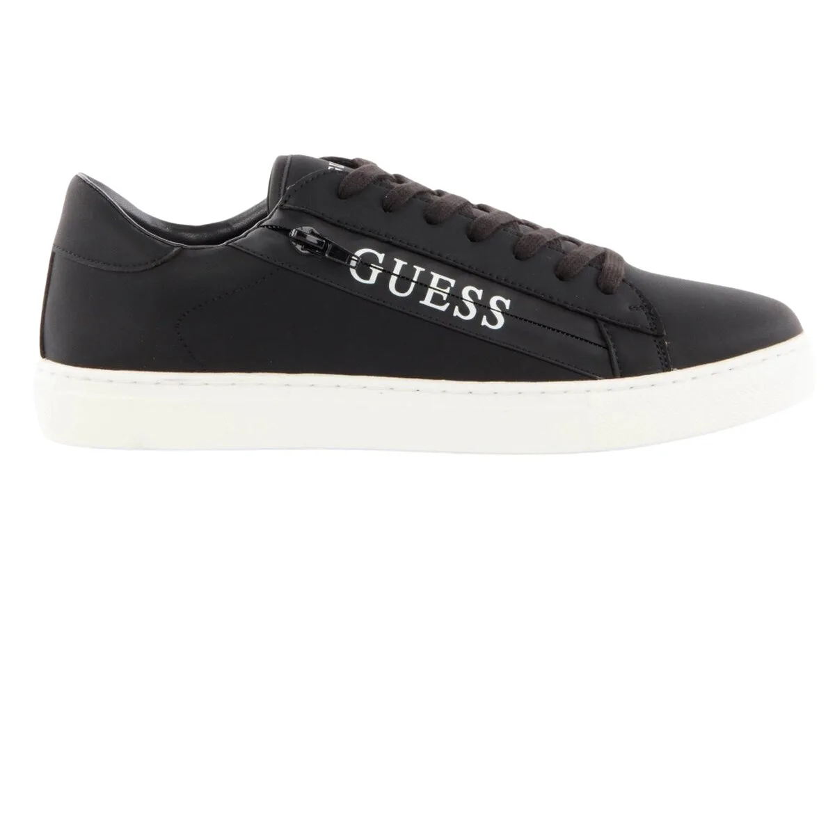Guess Todi herensneakers, synthetisch zwart. Authentieke Guess-schoen - streetwear/sportwear design van Guess - Guess voor modebewuste mannen, perfect voor dagelijks gebruik - deze zwarte Guess-sneakers passen perfect bij de rest van je garderobe - comfortabele synthetische materialen - klassieke veters - Todi - synthetisch
