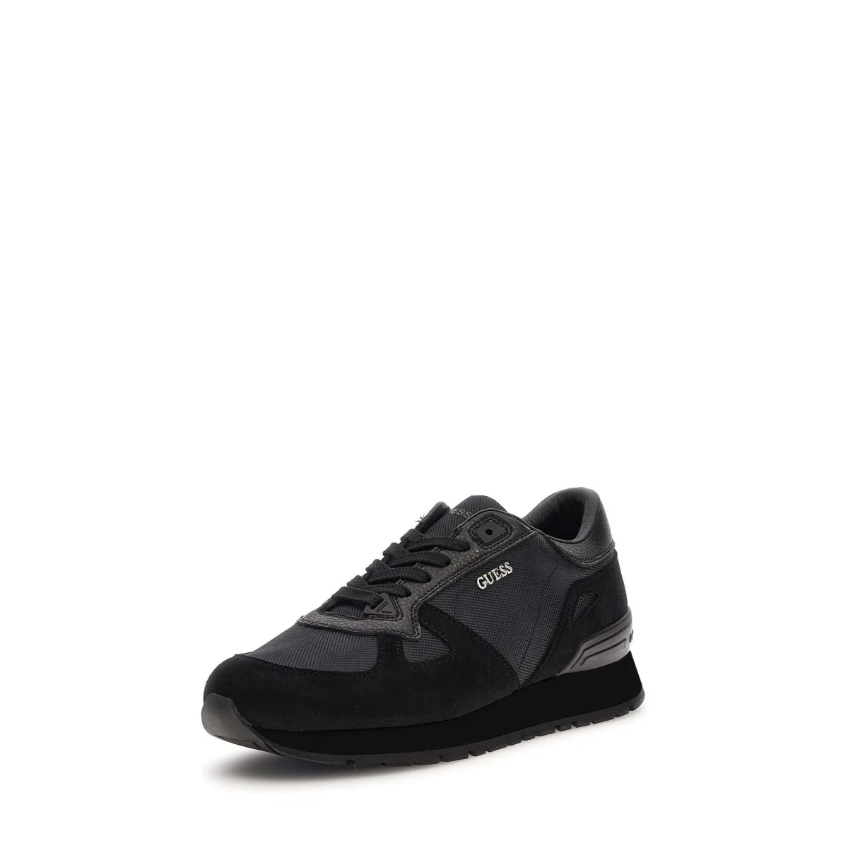 Guess Tresa herensneakers in zwart synthetisch materiaal. Originele Guess merkschoen – streetwear/sportswear design van Guess – modieuze Guess schoen voor heren, perfect voor dagelijks gebruik – deze zwarte Guess sneakers passen perfect bij de rest van je garderobe – comfortabel synthetisch materiaal – klassieke veters – Tresa – synthetisch