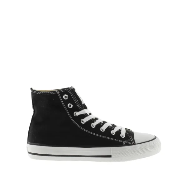Katoenen canvas sneaker met rubberen versterkte teen en 100% katoenen buitenkant en voering. Rubberen zool. Gemaakt in P.R. van China.