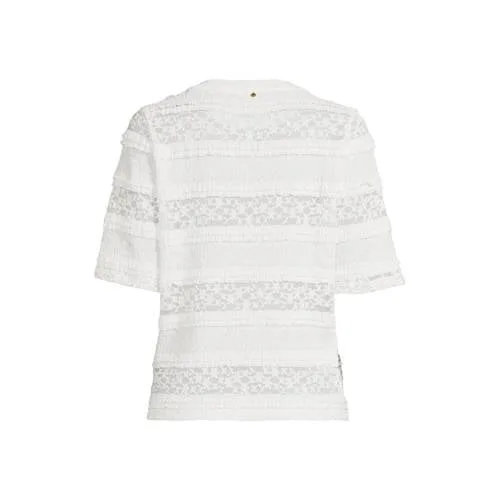 Deze Tramontana dames top met kant is een praktische basis voor je garderobe in het lenteseizoen. De top heeft een effen kleur en een vrouwelijke uitstraling door de subtiele kantdetails. Dankzij de ronde hals en de korte, rechte mouwen oogt het model rustig en tijdloos. Het soepele materiaal met stretch sluit goed aan en beweegt makkelijk met je mee op een drukke dag.Details die je elke dag kunt dragen Effen top met kantdetails voor een vrouwelijke uitstraling Korte, rechte mouwen voor een luchtig gevoel Ronde hals die mooi aansluit bij verschillende halskettingen Stof met stretch door 10% elastaan voor extra bewegingsvrijheid Geen zakken, waardoor het silhouet glad en verzorgd blijft Wasbaar op 30 graden en lauw strijkbaar (1 punt) Niet drogen in de droogtrommel om de vorm mooi te houden Onderdeel van de Feminine collectie in standaardmatenMakkelijk te stylen top voor elke dagDeze top combineer je eenvoudig met een jeans, nette broek of rok. Door de effen kleur en de rustige vorm past de top goed onder een blazer of vest. Geschikt voor werk, een etentje of een casual dag, zonder dat je lang hoeft na te denken over je outfit.Tramontana in het kortTramontana ontwerpt collecties waarin vrouwelijkheid en draagbaarheid worden gecombineerd. De pasvormen zijn gemaakt met aandacht voor het dagelijks leven, zodat je je prettig voelt in wat je draagt. Met deze top kies je voor een merk dat moderne trends vertaalt naar kleding die je vaak uit de kast pakt.Een top die je garderobe rustig, verzorgd en toch vrouwelijk aanvult.