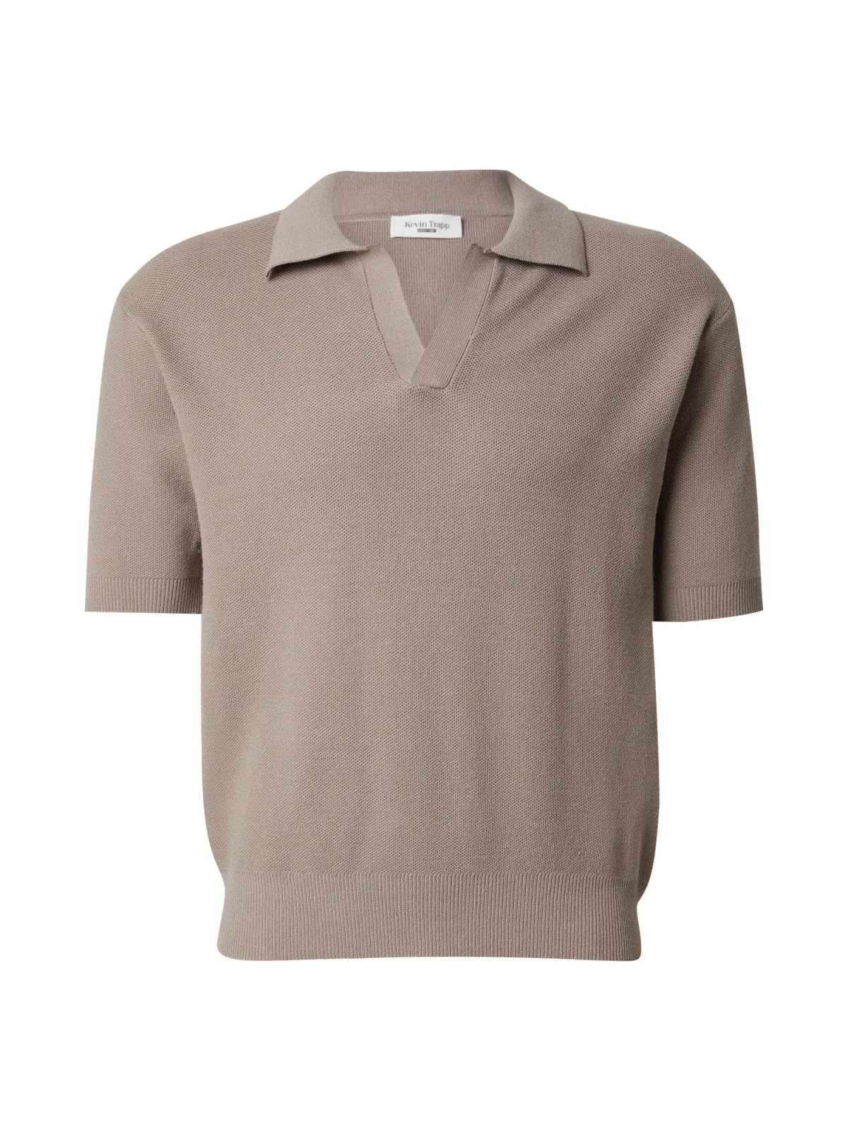 Design: Geribbelde kraag, Rechte zoom, Geribd ceintuurtje; Materiaal: Knitwear; Halstype: Polokraag; Motief: Effen; Extra's: Fully fashioned, Met textuur; Pasvorm: Normale pasvorm; Armlengte: Kwartmouw; Lengte: Normale lengte