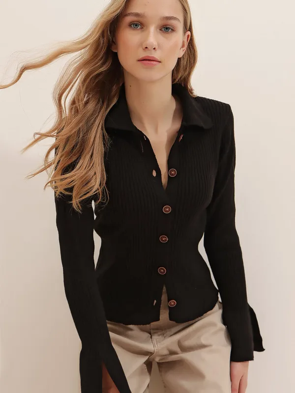Trend Alaçatı Stili Gebreid vest zwart Prijzen