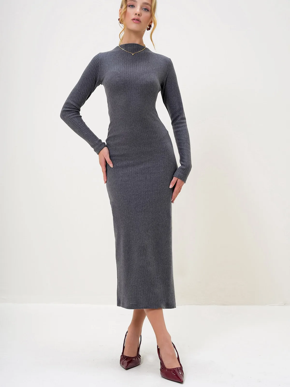 Trend Alaçatı Stili Gebreide jurk antraciet Prijzen