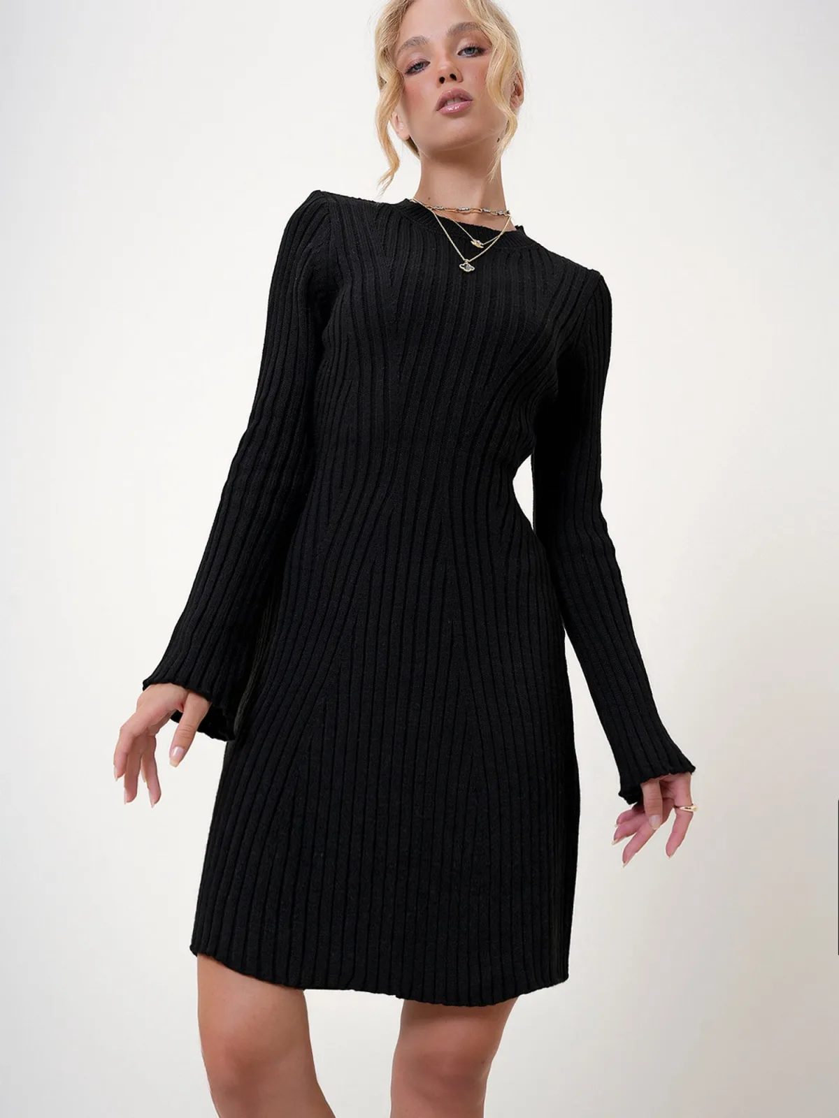 Trend Alaçatı Stili Gebreide jurk zwart Prijzen