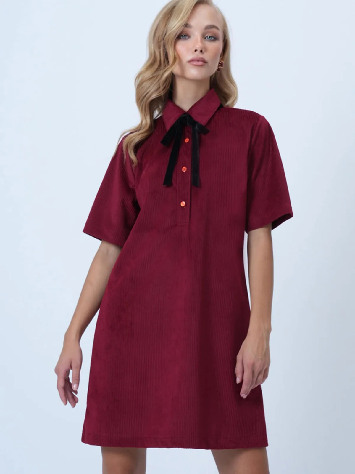 Design: Gevoerde zoom/rand, Placket; Type sluiting: Knoopsluiting; Materiaal: Corduroy; Halstype: Polokraag; Motief: Effen; Extra's: Applicaties, Op staal naden, Voelt zacht aan; Lengte: Knielengte; Snit: Recht; Pasvorm: Losse pasvorm; Armlengte: Halve mouw