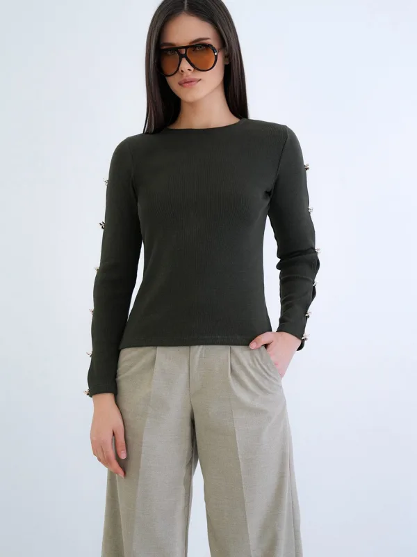 Design: Gevoerde zoom/rand, Rechte zoom, Geribbeld gebreid; Materiaal: Jersey; Halstype: Ronde hals; Motief: Effen; Details: Cut-outs; Extra's: Op staal naden, Buigzame grip; Pasvorm: Slanke pasvorm; Armlengte: Lange mouw; Lengte: Normale lengte