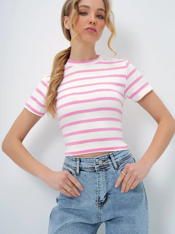 Trend Alaçatı Stili Shirt lichtroze / wit Prijzen