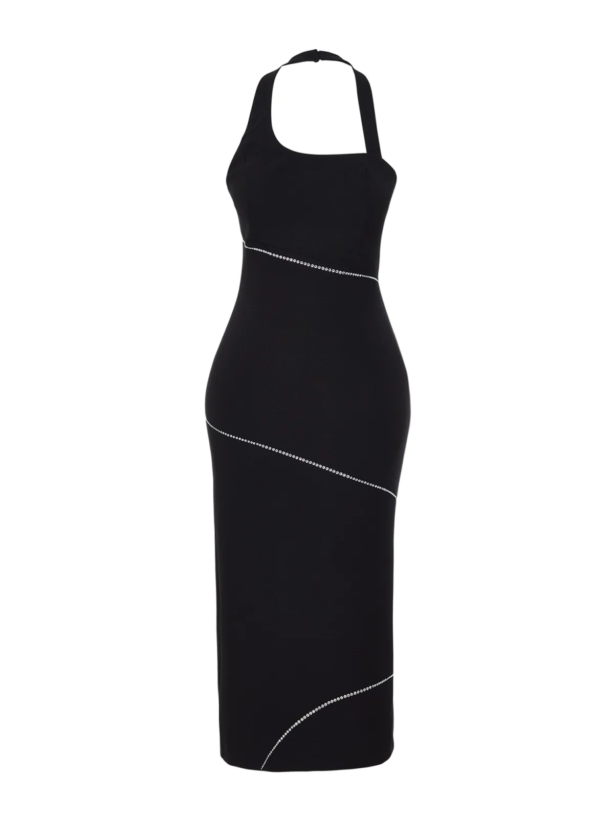Design: Rug rits, Overige kragen; Type sluiting: Ritssluiting; Motief: Effen; Soort bandjes: Haltermodel; Details: Sierstenen; Extra's: Met halfedelstenen, Op staal naden; Lengte: Lang/maxi; Snit: Figuur omarmend; Pasvorm: Aansluitende pasvorm; Armlengte: Mouwloos
