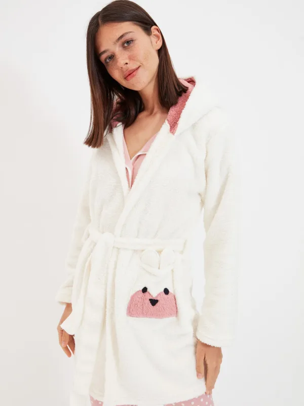 Specificaties: Trendyol Badjas kort ecru / oudroze / zwart