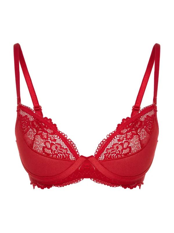 Cup soorten: Demi cup bh; Soort bandjes: Normale bandjes; Bh/bikini type: T-shirt; Beugel: Met beugel; Design: Elastische taille/zoom, Geschulpte zoom; Type sluiting: Haakjes; Motief: Effen; Details: Kant; Extra's: Licht transparant, Verstelbare bandjes, Met textuur