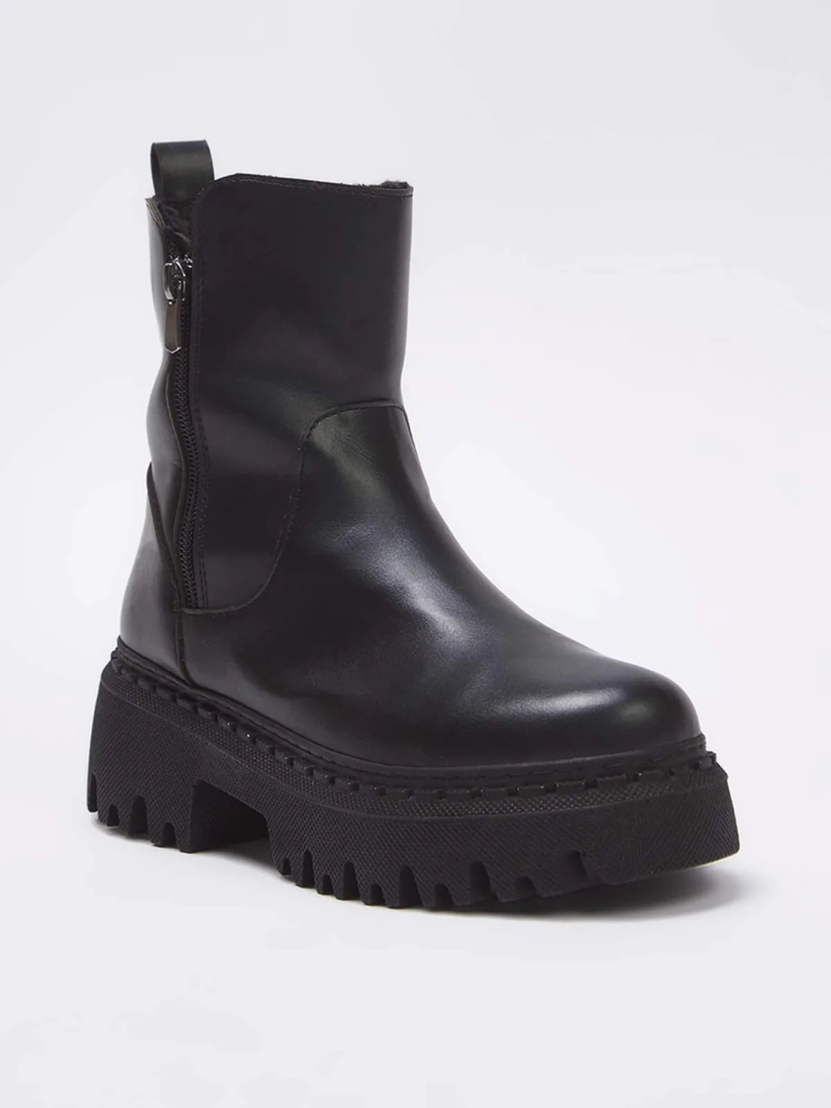 Design: Profielzolen, Hielband; Type sluiting: Ritssluiting; Type hak: Blokhak; Materiaal: Imitatieleder; Motief: Effen; Plateau: Met plateau; Materiaal: Imitatieleer; Schoenneus: Ronde neus; Extra's: Gewatteerde rand, Flexibele zool; Hakhoogte: Middelhoge hak (3-7 cm)