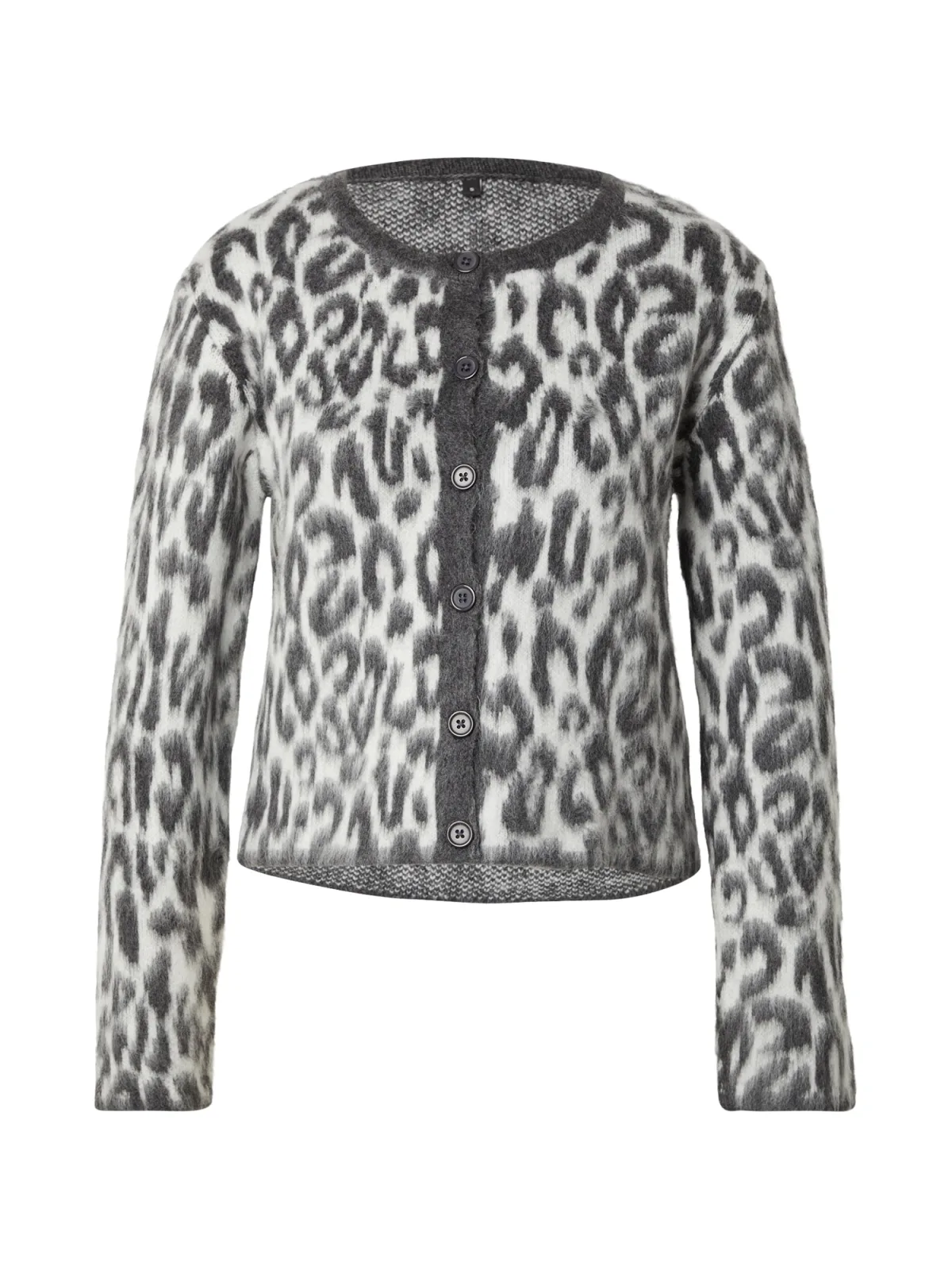 Design: Geribbelde kraag, Geribd ceintuurtje; Type sluiting: Knoopsluiting; Materiaal: Knitwear; Halstype: Ronde hals; Motief: Dierenprint; Extra's: All-over patroon, Met textuur; Pasvorm: Normale pasvorm; Armlengte: Lange mouw; Lengte: Normale lengte