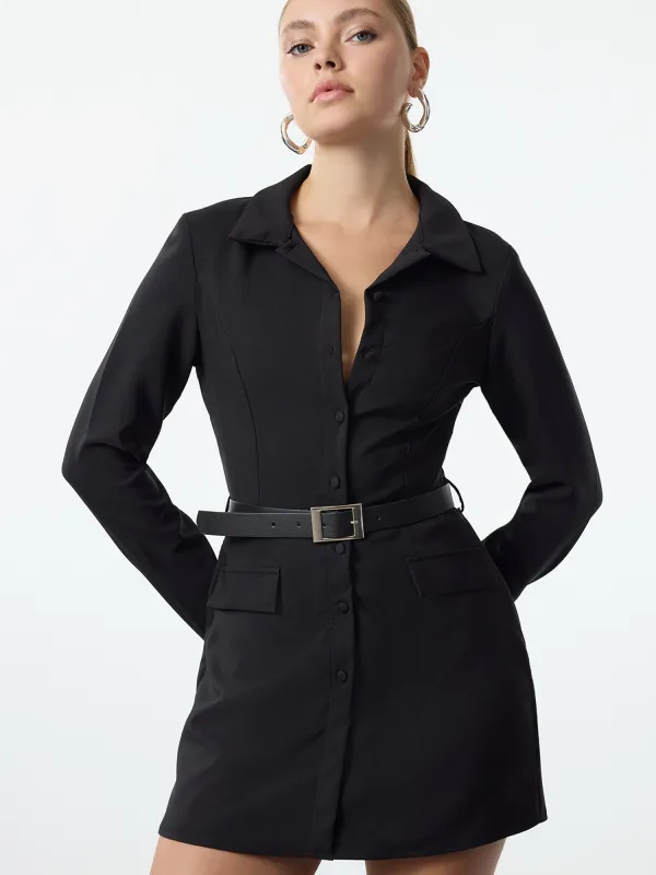 Design: Gevoerde zoom/rand, Turn-down kraag; Type sluiting: Knoopsluiting; Motief: Effen; Extra's: Riemlussen, Overdekte knopen; Lengte: Kort/mini; Pasvorm: Slanke pasvorm; Armlengte: Lange mouw