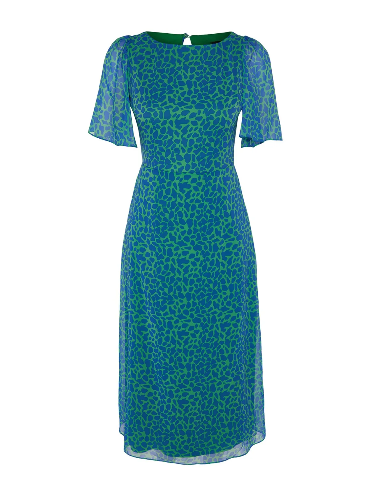 Design: Gevoerde zoom/rand, Rechte zoom; Type sluiting: Knoopsluiting; Materiaal: Chiffon; Halstype: Boothals; Details: Cut-outs, Plooien, Gedrapeerd; Extra's: All-over patroon, Voelt zacht aan; Lengte: 3/4 lengte; Snit: Getailleerd; Pasvorm: Normale pasvorm; Armlengte: Kwartmouw