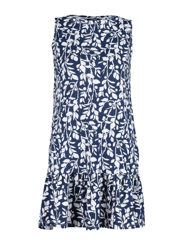 Design: Gevoerde zoom/rand, A-lijn; Halstype: Ronde hals; Soort bandjes: Brede bandjes; Details: Volant, Gedrapeerd; Extra's: All-over patroon, Voelt zacht aan; Lengte: Kort/mini; Snit: Uitlopend; Pasvorm: Losse pasvorm; Armlengte: Mouwloos