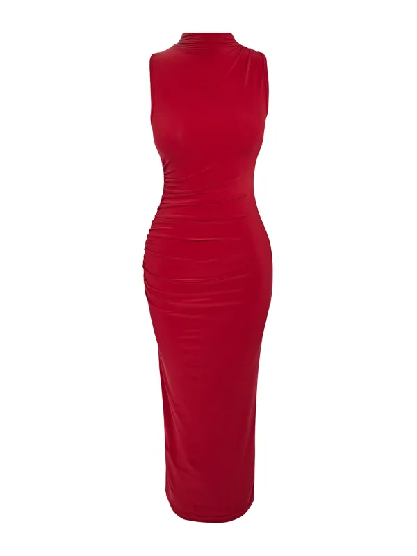 Design: Gevoerde zoom/rand, Rechte zoom; Halstype: Opstaande kraag; Motief: Effen; Soort bandjes: Brede bandjes; Details: Gedrapeerd; Extra's: Op staal naden, Gladde stof; Lengte: 7/8 lengte; Snit: Figuur omarmend; Pasvorm: Aansluitende pasvorm; Armlengte: Mouwloos