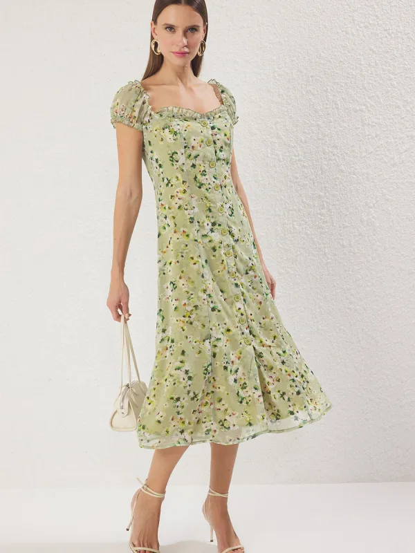 Trendyol Jurk smaragd / kiwi / lichtgroen / wit
