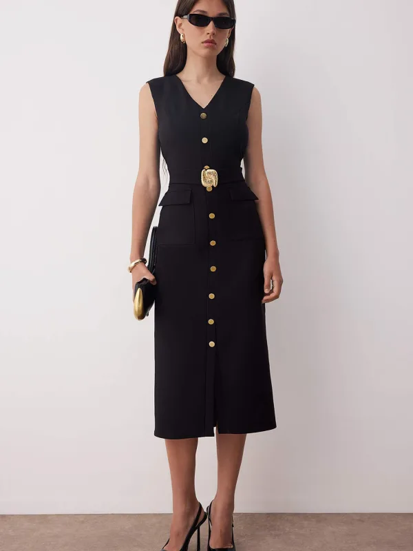 Design: Placket, Rechte zoom, Rug rits, Met riem, Opzet-/flapzak; Type sluiting: Ritssluiting; Halstype: V-hals; Motief: Effen; Soort bandjes: Brede bandjes; Extra's: Op staal naden, Voelt zacht aan; Lengte: 3/4 lengte; Snit: Figuur omarmend; Pasvorm: Aansluitende pasvorm; Armlengte: Mouwloos