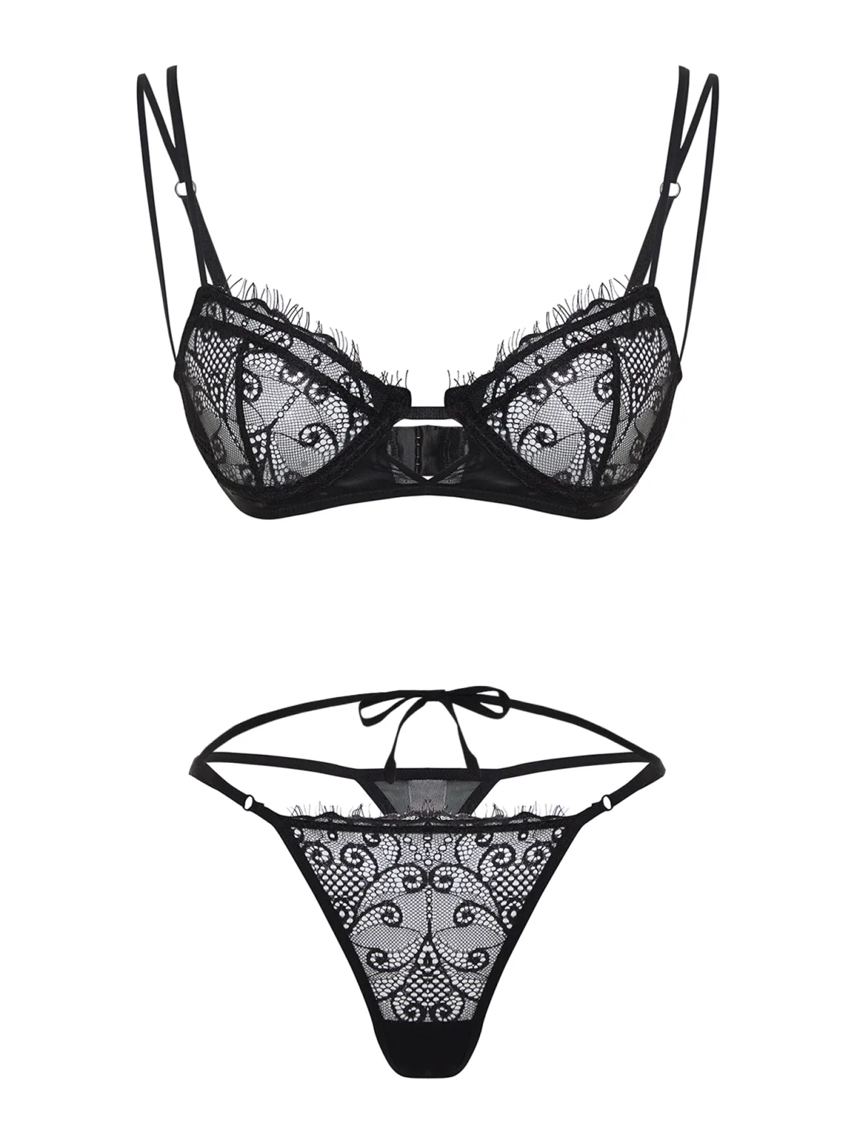 Cup soorten: Soft cup bh; Bh/bikini type: Balconette; Beugel: Met beugel; Motief: Effen; Details: Cut-outs, Franjes, Kant; Extra's: Licht transparant, Op staal naden, Met textuur; Aantal per set: 2-delig