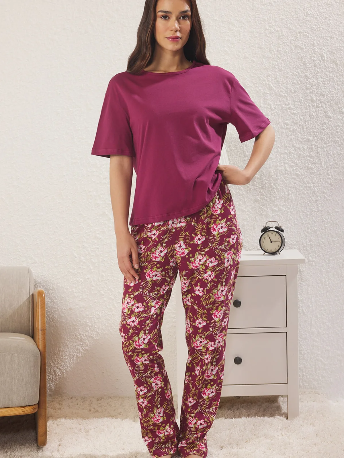 Specificaties: Trendyol Pyjama lichtgroen / fuchsia / bourgogne / wit