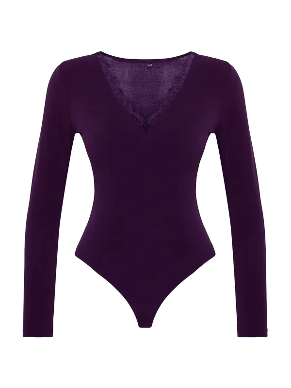 Design: Gevoerde zoom/rand, Diepe snit/decolleté; Type sluiting: Drukknoop; Materiaal: Jersey; Halstype: V-hals; Motief: Effen; Details: Kant; Extra's: Op staal naden, Voelt zacht aan; Pasvorm: Aansluitende pasvorm; Armlengte: Lange mouw