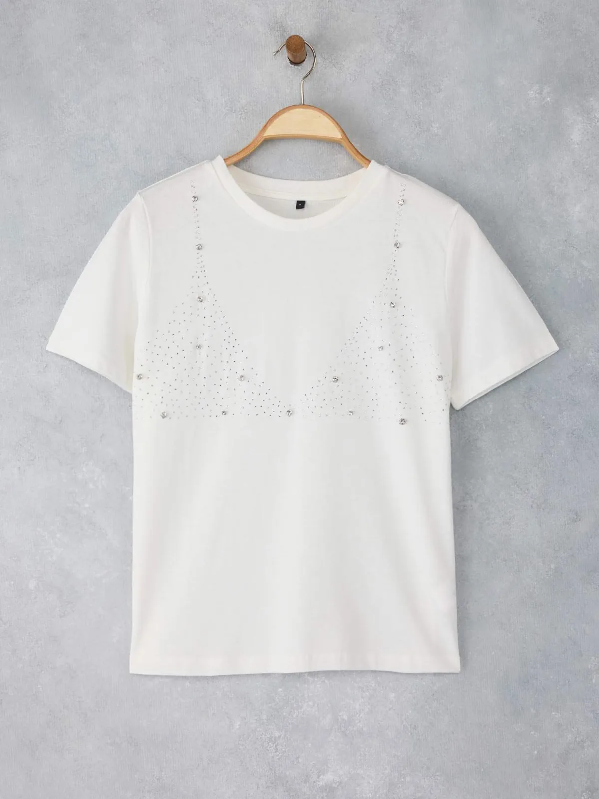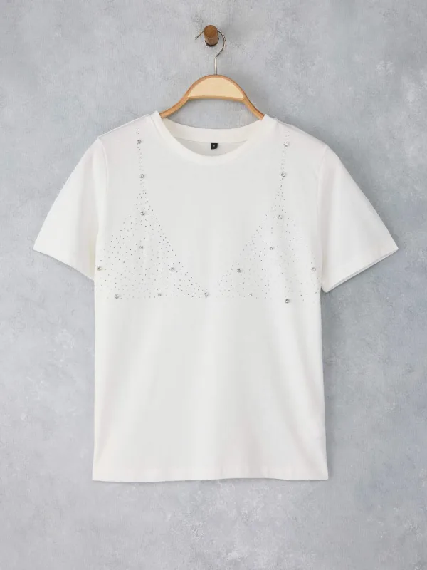 Design: Gevoerde zoom/rand, Geribbelde kraag, Rechte zoom; Materiaal: Jersey; Halstype: Ronde hals; Motief: Effen; Details: Sierstenen; Extra's: Op staal naden, Voelt zacht aan; Pasvorm: Normale pasvorm; Armlengte: Kwartmouw; Lengte: Normale lengte