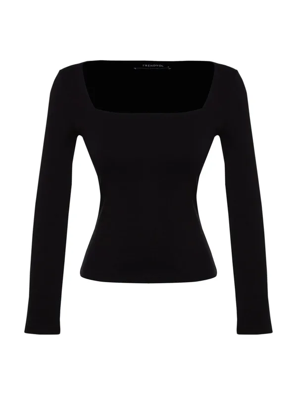 Design: Gevoerde zoom/rand, Rechte zoom; Materiaal: Jersey; Halstype: Carréhals; Motief: Effen; Extra's: Op staal naden, Voelt zacht aan; Pasvorm: Aansluitende pasvorm; Armlengte: Lange mouw; Lengte: Normale lengte