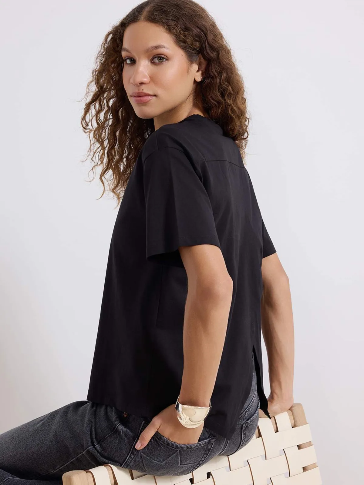 Design: Gevoerde zoom/rand, Geribbelde kraag, Rechte zoom; Materiaal: Jersey; Halstype: Ronde hals; Motief: Effen; Extra's: Op staal naden, Voelt zacht aan; Pasvorm: Losse pasvorm; Armlengte: Halve mouw; Lengte: Normale lengte