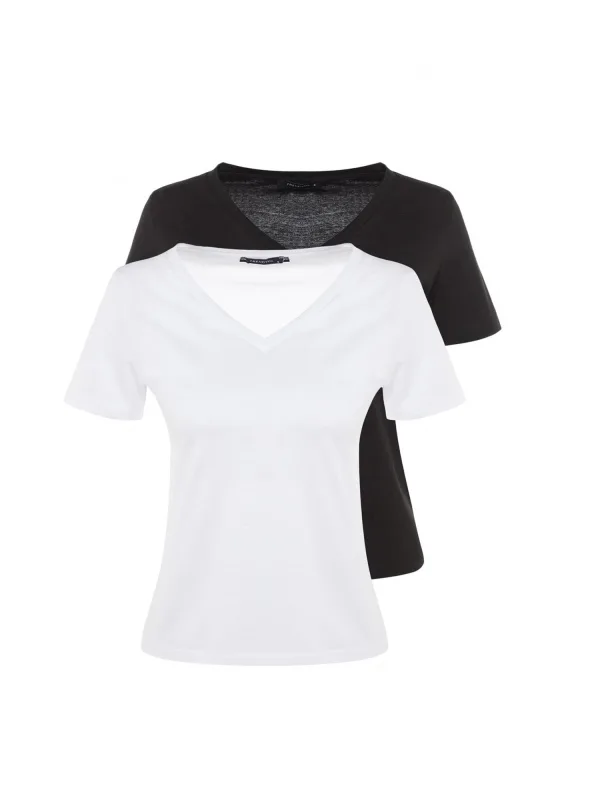 Design: Gevoerde zoom/rand, Rechte zoom; Materiaal: Jersey; Halstype: V-hals; Motief: Effen; Extra's: Op staal naden, Voelt zacht aan; Pasvorm: Normale pasvorm; Aantal: 2 Pack; Armlengte: Kwartmouw; Lengte: Normale lengte