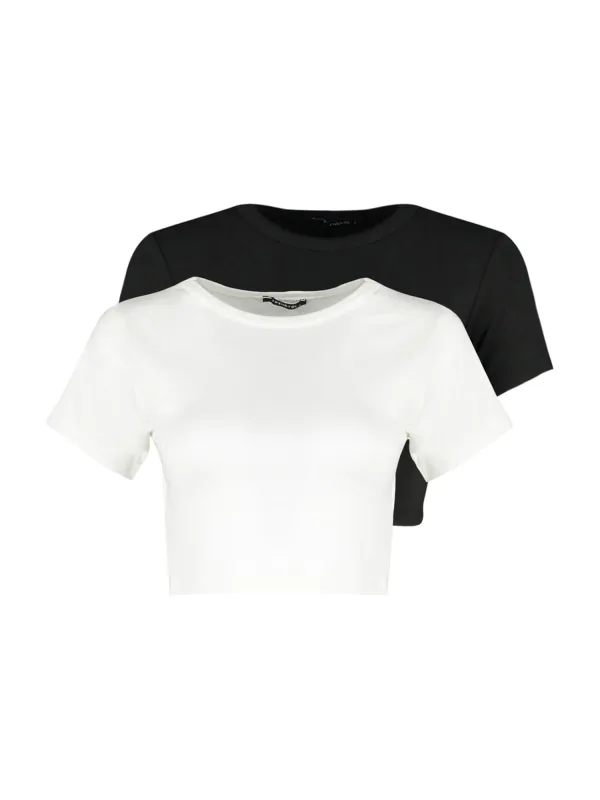 Design: Gevoerde zoom/rand, Rechte zoom, Ingelegde kraag; Materiaal: Jersey; Halstype: Ronde hals; Motief: Effen; Extra's: Op staal naden, Voelt zacht aan; Pasvorm: Slanke pasvorm; Aantal: 2 Pack; Armlengte: Kwartmouw; Lengte: Korte pasvorm