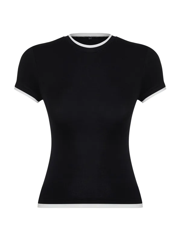 Design: Gevoerde zoom/rand, Geribbelde kraag, Contrasterende inserts, Nektape; Materiaal: Jersey; Halstype: Ronde hals; Motief: Effen; Extra's: Op staal naden, Voelt zacht aan; Pasvorm: Slanke pasvorm; Armlengte: Kwartmouw; Lengte: Normale lengte