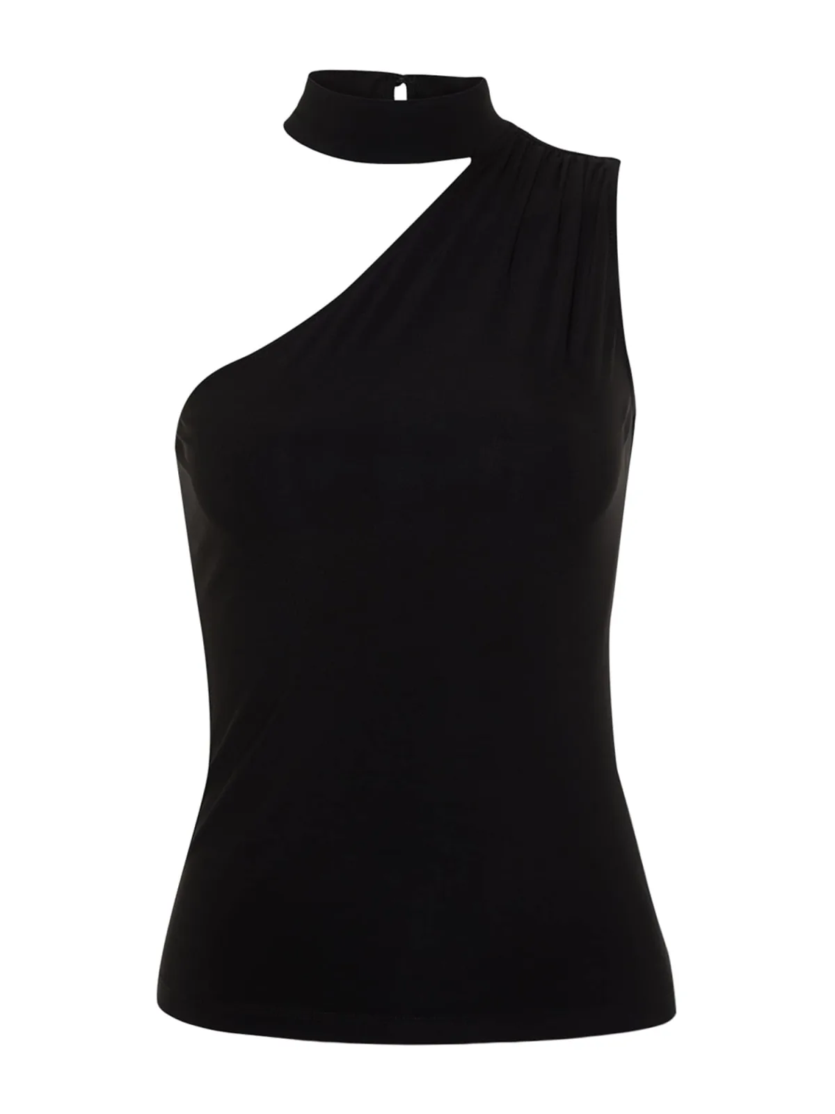 Design: Gevoerde zoom/rand, Knop sluiting; Materiaal: Jersey; Halstype: Opstaande kraag; Motief: Effen; Soort bandjes: One-shoulder; Extra's: Op staal naden, Lichte stof; Pasvorm: Normale pasvorm; Armlengte: Mouwloos; Lengte: Normale lengte