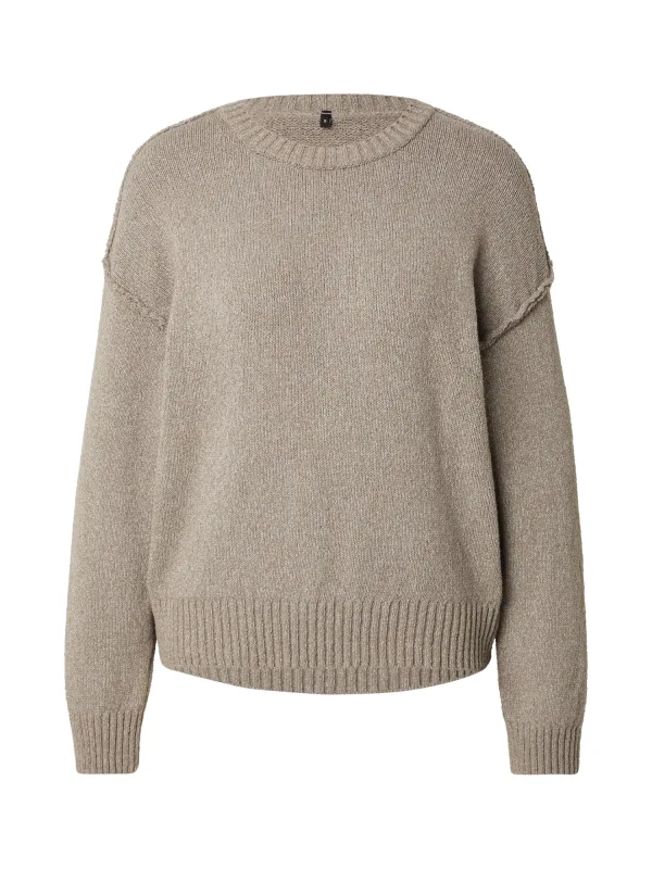 Design: Geribbelde kraag, Geribd ceintuurtje, Overcut schouder; Materiaal: Knitwear; Halstype: Ronde hals; Motief: Mélange; Extra's: Fully fashioned, Met textuur; Pasvorm: Losse pasvorm; Armlengte: Lange mouw; Lengte: Normale lengte
