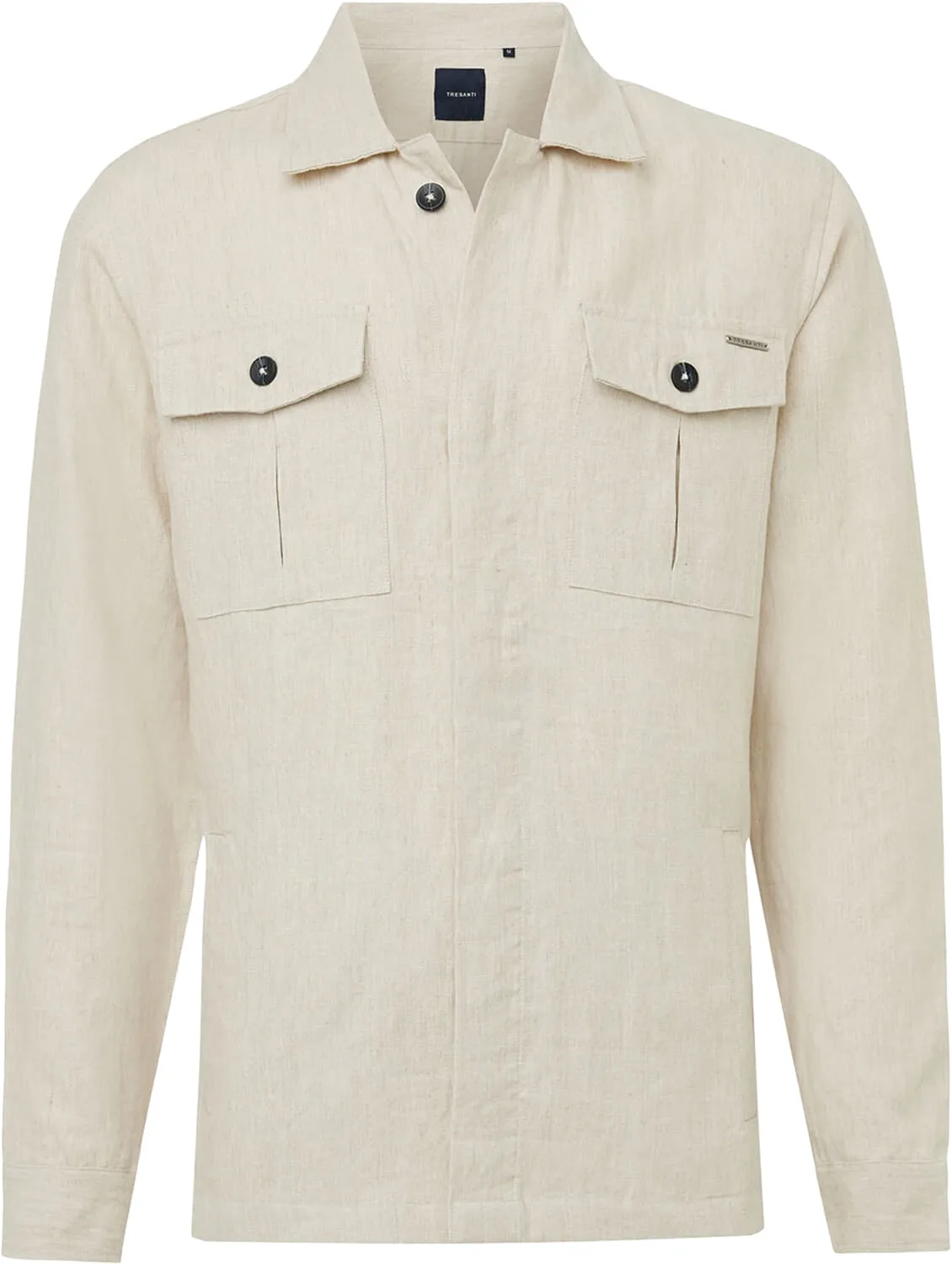 Overshirt Giorgino van Tresanti is een overshirt met casual, minimalistische uitstraling. De regular pasvorm, spreidkraag en knoopsluiting geven een nette lijn. Voorzien van lange mouwen met manchetten en knopen, en voorzakken met klep en knoop. Effen, lichtbeige tint. Draag open over een trui.