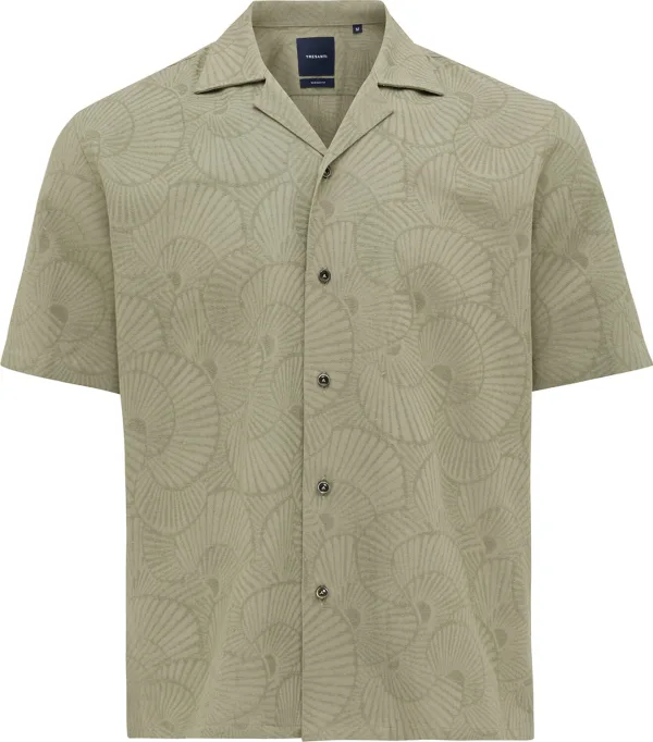 Overhemd Elia Structured van Tresanti is een stijlvol heren overhemd met een opstaande kraag, korte mouwen en een effen patroon. De knoopsluiting en zakken op de voorzijde maken dit casual overhemd veelzijdig en geschikt voor diverse gelegenheden.