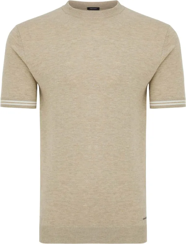 T-shirt Gabriele van Tresanti is een polo met ronde hals, effen dessin en een casual, minimalistische uitstraling. De fijne breistructuur voelt soepel aan, terwijl de korte mouwen zijn afgewerkt met subtiele strepen en ribboorden voor een nette pasvorm.