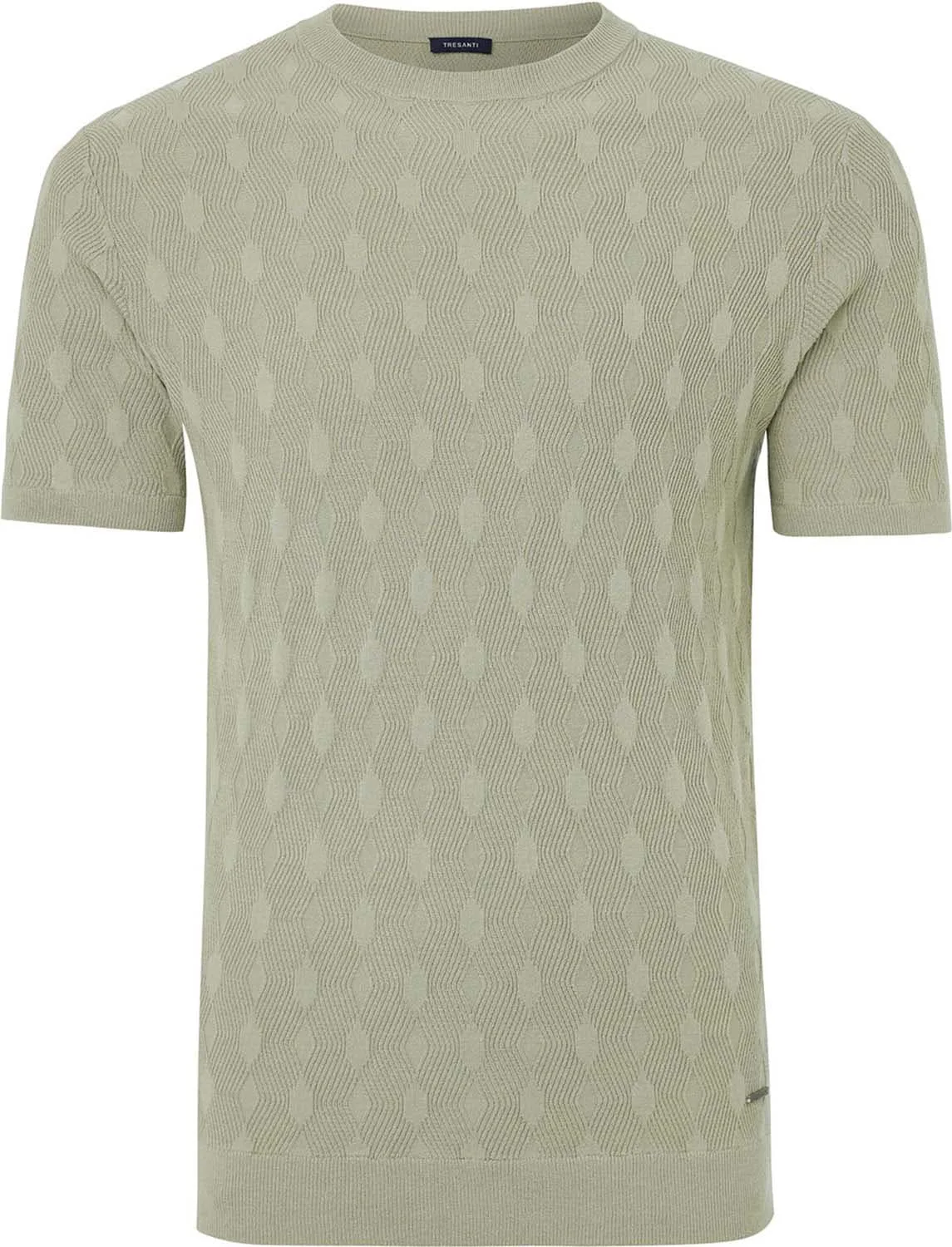 T-shirt Gianaldo polo van Tresanti combineert casual minimalisme met een ronde hals, korte mouwen en een subtiel grafisch jacquardpatroon. De fijngebreide structuur en geribde boorden zorgen voor een nette, comfortabele pasvorm, ideaal voor een ontspannen, verzorgde uitstraling bij casual momenten.