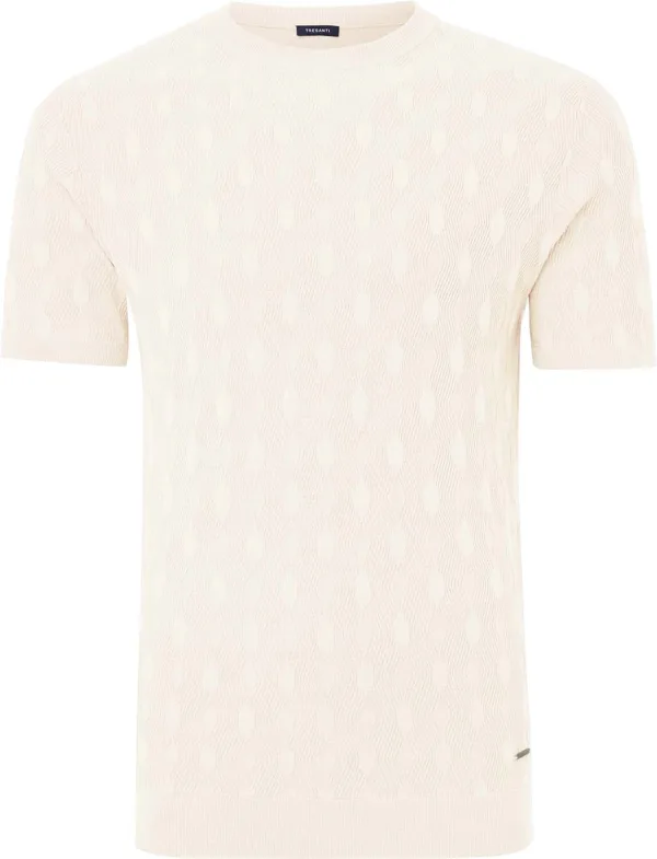 T-shirt Gianaldo polo van Tresanti combineert casual minimalisme met een ronde hals, korte mouwen en een subtiel grafisch jacquardpatroon. De fijngebreide structuur en geribde boorden zorgen voor een nette, comfortabele pasvorm, ideaal voor een ontspannen, verzorgde uitstraling bij casual momenten.