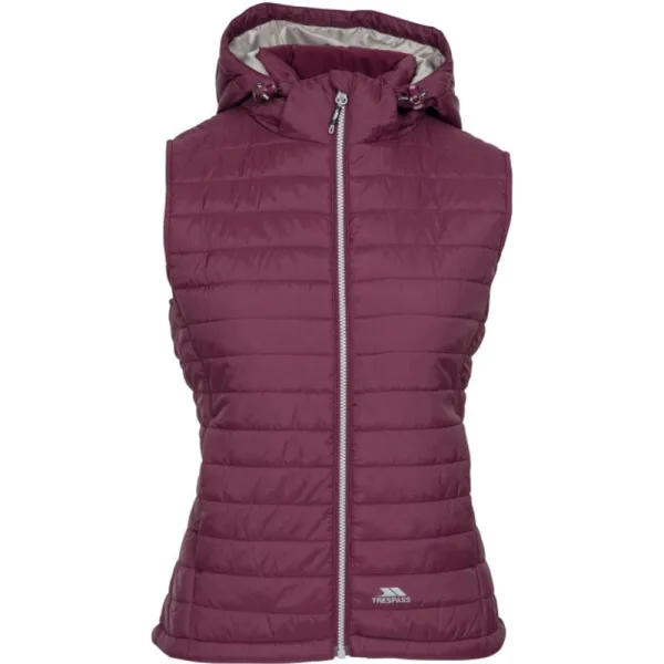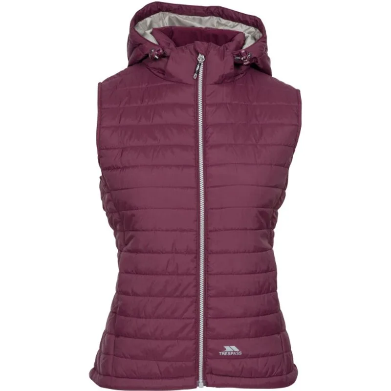 Licht gewatteerd met bubbel stiksel Contrasterende voering met rits aan de voorkant Storm klep aan de binnenkant Zoom verstellers 2 onopvallende zakken met rits Afneembare capuchon met drukknoopsluiting Buitenkant: 100% Polyamide, AC-laag, Voering: 100% Polyester, Vulling: 100% Polyester Borstomvang Trespass dames (ca.): XS / 81 cm, S / 86 cm, M / 91,4 cm, L / 96,5 cm, XL / 101,5 cm , XXL / 106,5 cm.