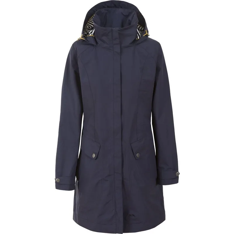 Geverfde garen en gestreepte voering Contrastafwerking Verstelbare verborgen capuchon Lange lengte Verstelbare manchetten Verstijfde band aan de voorkant met kinbescherming 2 zakken aan de zijkant 2 zakken met flappen Waterdicht 5000 mm, ademend 5000 mvp, getapete naden, winddicht 100% Polyamide PU-laag, Voering: 65% Polyester / 35% Katoen jersey Borstomvang Trespass dames (ca.): XS / 81 cm, S / 86 cm, M / 91,4 cm, L / 96,5 cm, XL / 101,5 cm , XXL / 106,5 cm.