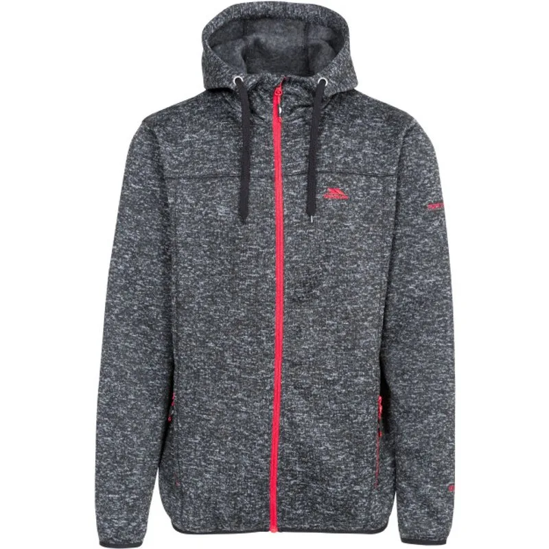 Gebreide marl fleece Terug geborsteld Met capuchon Contrasterende ritsen 2 zakken met rits Rits aan de binnenkant Coverseam steekdetail Stretch bindingen Capuchon met trekkoord Aitrap, 320 gsm 100% Polyester Trespass Borstomvang Heren (ca.): S – 89-94cm, M – 96.5-101.5cm, L – 104-109cm, XL – 111.5-117cm, XXL – 117-122cm, 3XL – 122-127cm.