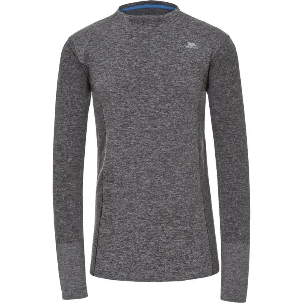 Naadloos Lange mouwen Ronde hals Contraterende panelen Reflectieve print bij de logo's Afwerkinng Vochtafdrijvend Droogt snel op 59% polyamide / 36% polyester / 5% elastaan Trespass Borstomvang Heren (ca.): S - 89-94cm, M - 96.5-101.5cm, L - 104-109cm, XL - 111.5-117cm, XXL - 117-122cm, 3XL - 122-127cm.