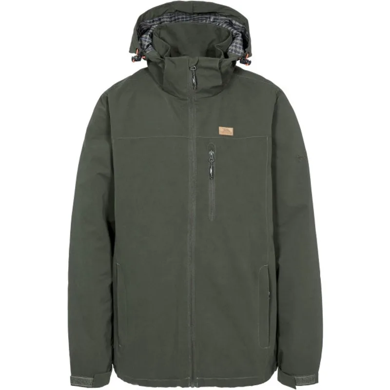 Check voering Verstelbare afristbare capuchon 3 zakken met rits 1 binnenzak met rits Storm klep aan de binnenkant Verstelbare manchetten en zoomkoord Waterdichte 5000 mm, ademende 3000 mvp, winddichte, getapete naden Buitenkant: 100% polyesterpongezijde, TPU-membraan, voering: 100% polyester Borstomvang Trespass heren (ongeveer): S - 89-94cm, M - 96.5-101.5cm, L - 104-109cm, XL - 111.5-117cm, XXL - 117-122cm, 3XL - 122-127cm.