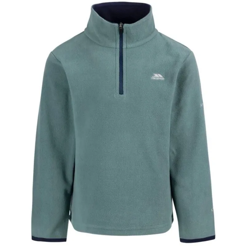 Luchtdicht 1/2 rits in Contrastkleur Contrastband op de manchetten Contrast met de binnenste kraag 100% Polyester Microfleece Borstomvang Trespass Kindermaat (ongeveer): 2/3 jaar – 53 cm, 3/4 jaar – 56 cm, 5/6 jaar – 61 cm, 7/8 jaar – 66 cm, 9/10 jaar – 71cm, 11/12 jaar – 79cm.