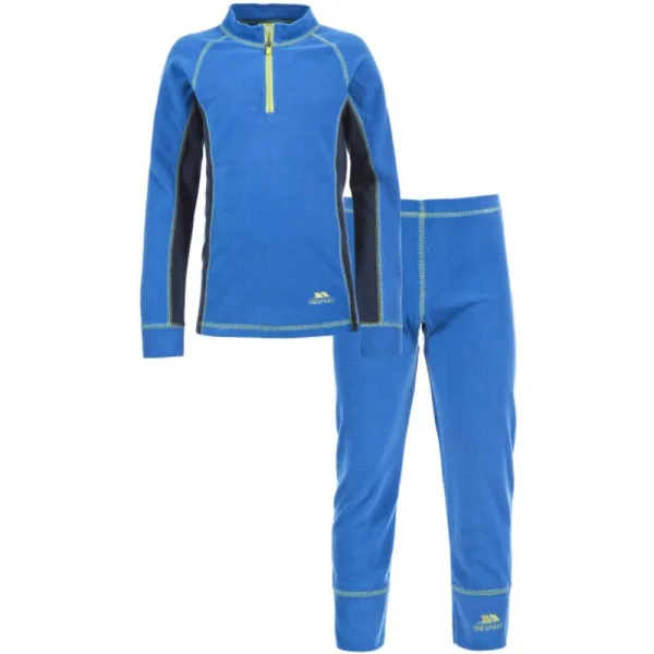 Kinder thermische boven- en onderlaag gemaakt van fleece-materiaal. Lichtgewicht en slanke montage. Halve rits, raglanmouwen en contrasterende vlekken op de top. Elastische tailleband aan de onderkant voor een goede pasvorm. Ideaal voor het dragen onder normale kleding op een koude dag. 100% Polyester.