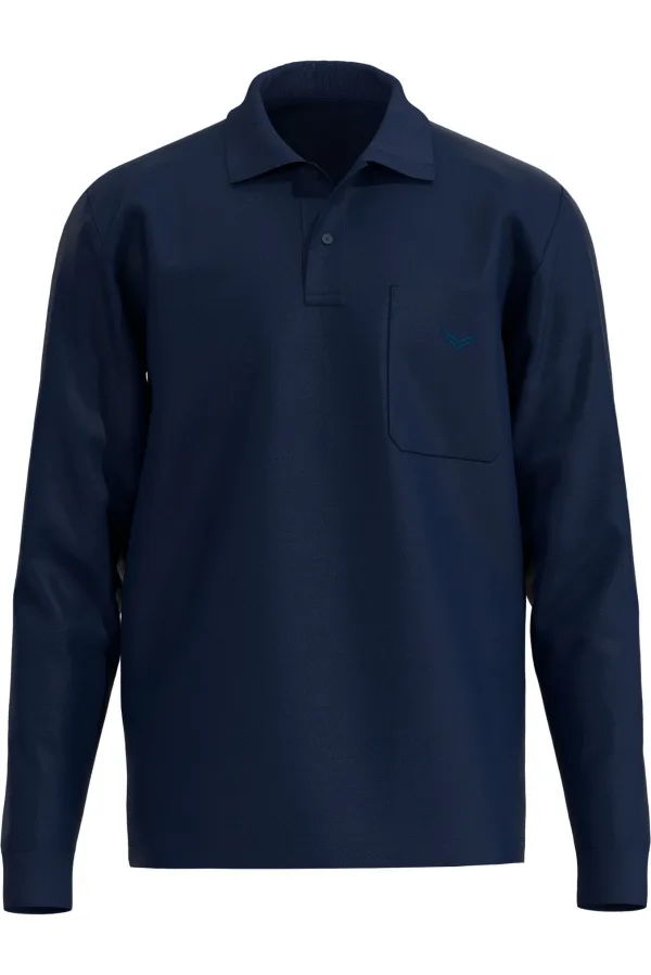 TRIGEMA Poloshirt lange mouw donkerblauw, Effen Prijzen