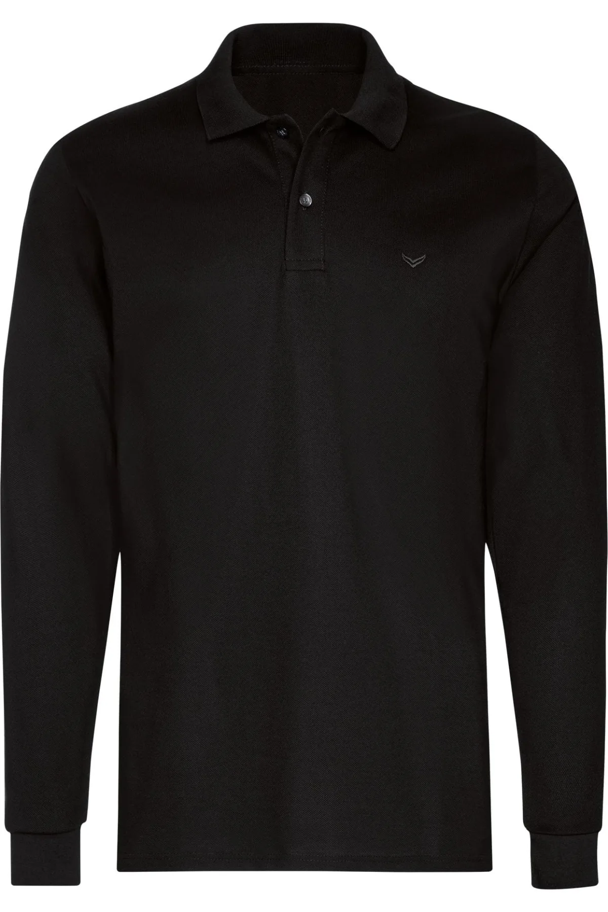 TRIGEMA Poloshirt lange mouw zwart, Effen