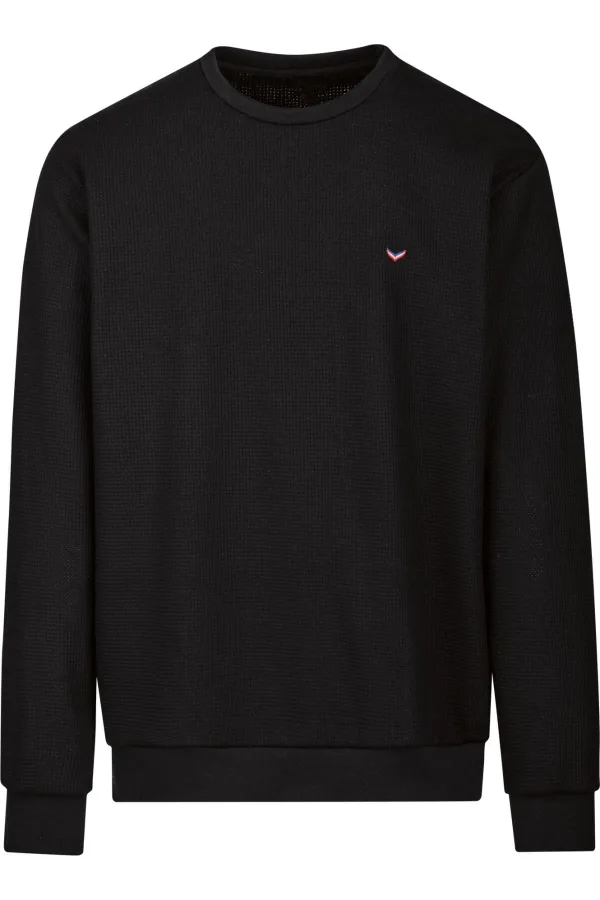 TRIGEMA Sweatshirt ronde halszwart, Wafelmotief